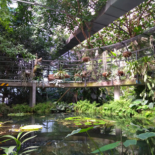 Entro nella serra tropicale. L'umidità è superiore a 80%, in confronto Roma in agosto è l'Alaska. L'aria profuma di radice di Liquirizia. Mi inoltro nel verde, su per la scala che permette di ammirare la straordinaria biodiversità di questa collezione. Sono sola, i colori, le forme bizzarre, sono di una bellezza soverchiante. Penso ad Alexander von Humboldt, il naturalista e botanico tedesco, che nel 1800 per quattro mesi esplora i territori del Rio Orinoco, selvaggio e inviolato. I fiori dell'Helicornia rostrata (foto centrale in alto) sembrano proprio uccelli esotici.